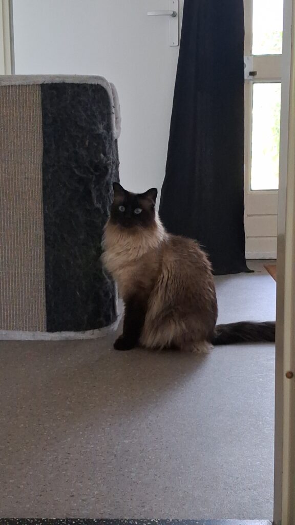 De eerste keer dat ik langskom terwijl jullie er niet zijn, is altijd even wennen. Voor de kat, maar soms ook voor mij. De uitdrukking “de kat uit de boom kijken” is op deze eerste dag dan ook perfect van toepassing.